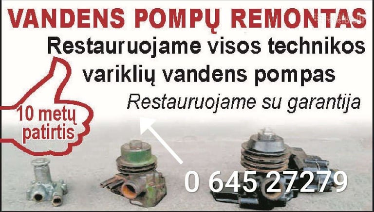 vandens pompŲ REMONTAS BEI PARDAVIMAS, DAUGIAU INFO +370 645 27279, M.Sederavičiaus g. 12, Kaunas